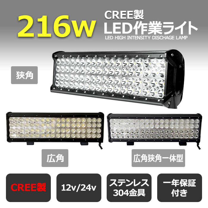 LEDワークライト 作業灯 CREE製 216W 集魚灯 投光器 バックランプ デッキライト 重機 トラック 漁船 補助灯 タイヤ灯 12v24v