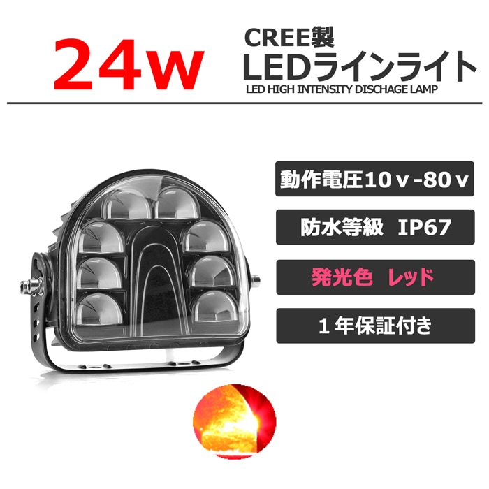 【8個】ラインライト CREE製 24W LED作業灯 ワークライト フォークリフト 警告灯 非常灯 赤 バックランプ 12v24v 48v レッド