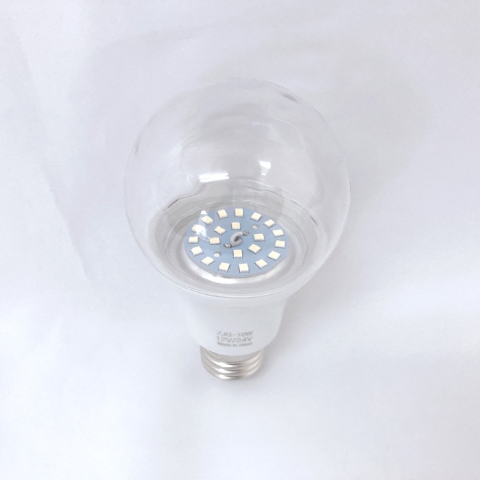 W数: 10W ノイズレス仕様 動作電圧: 12v/24v 兼用 本体材質: アルミ カバー材質: ポリカーボネート樹脂(PC) ソケット: E26 電極: 無極性 照射角度: 360度 発光色: 6,000K 昼白色 ルーメン: 800lm 製品重量: 61g サイズ: 約68mm×約121mm 内容: 【新品】電球1個 保証期間: 1年保証 ※保証書の発行は致しておりません。配送伝票控えが保証書の代わりとなります。