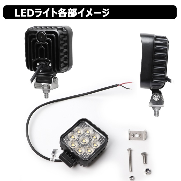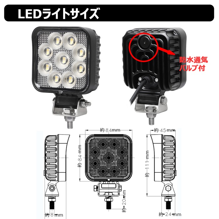 W数: 36W(4W×9pcs オスラム製LEDチップ ) ノイズレス仕様 寿命: 約30,000時間 動作電圧: 10~30V(12V / 24V 兼用) 使用温度: -40~85度 防水防震等級: IP67(水中での使用は不可です) 本体材質: アルミ合金鋳造ボデイー レンズ材質: ポリカーボネート樹脂(PC) 照射角: 広角・拡散タイプ 発光色: 6,000K ルーメン: 3,060lm 製品重量: 約385g(金具付) サイズ: 約84mm×84mm×45mm セット内容: 【新品】ランプ1個、ステンレス取り付けネジ×1式 保証期間: 1年保証 ※保証書の発行は致しておりません。配送伝票控えが保証書の代わりとなります。