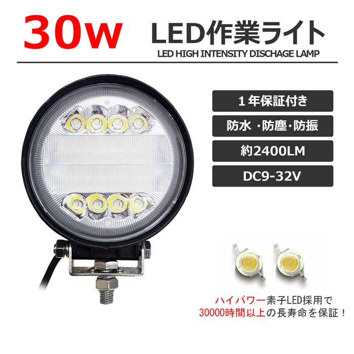 LEDワークライト 作業灯 30W 集魚灯 投光器 バックランプ デッキライト 重機 トラック 漁船 補助灯 タイヤ灯 12v24v 防水