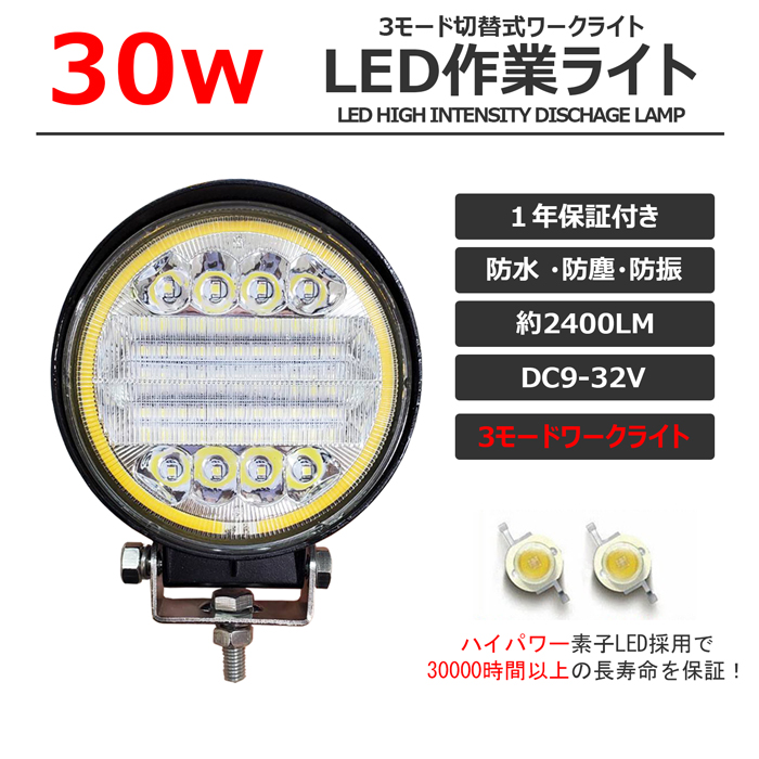LEDワークライト 作業灯 集魚灯 30W 投光器 バックランプ デッキライト サーチライト 黄色光 イエロー 船舶 フォグランプ 12v24v