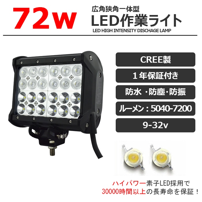 LED作業灯 ワークライト 72w 集魚灯 投光器 バックランプ デッキライト サーチライト 船舶用 12v/24v 路肩灯 補助灯 タイヤ灯 防水