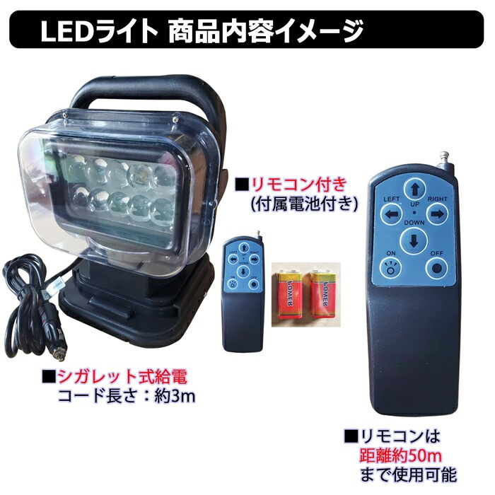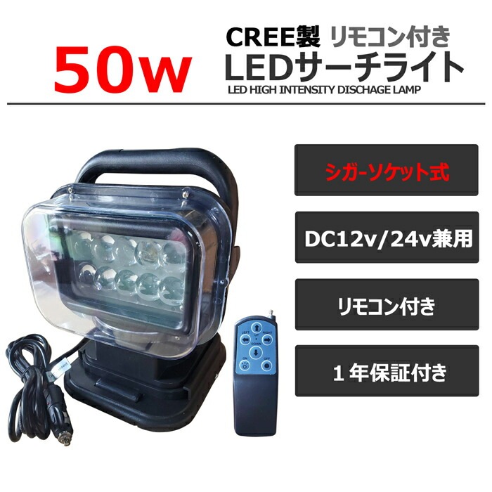 シガーソケット式 CREE製 50w LED作業灯 船舶 重機 漁船 ledサーチライト 12v24v兼用 リモコン式 スポットライト 回転