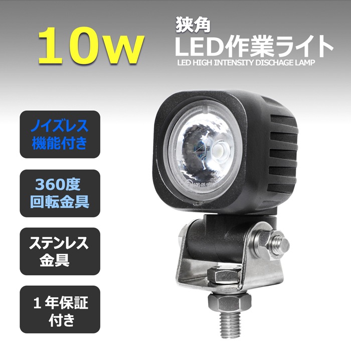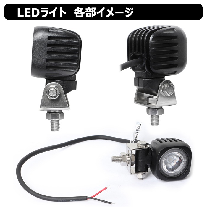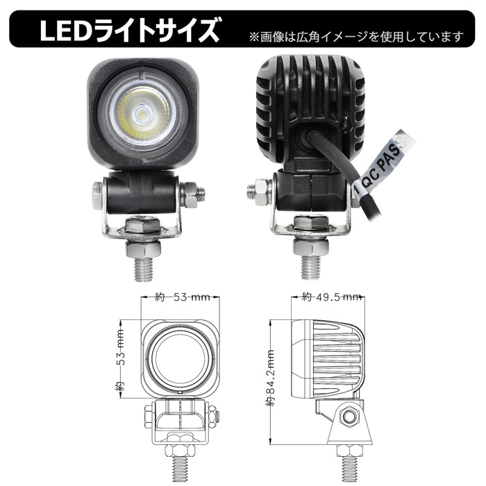 W数: 10W ノイズレス仕様 寿命: 約50,000時間 動作電圧: DC 10V~30V 防水防震等級: IP67 本体材質: アルミ レンズ材質: ポリカーボネート樹脂(PC) 照射角: 広角タイプ60度 / 狭角タイプ30度 発光色: 6,000K ルーメン: 800lm 製品重量: 約0.34kg サイズ: 約53mm×84.2mm×49.5mm セット内容: 【新品】ランプ1個、ステンレス取り付けネジ×1式 保証期間: 1年保証 ※保証書の発行は致しておりません。配送伝票控えが保証書の代わりとなります。