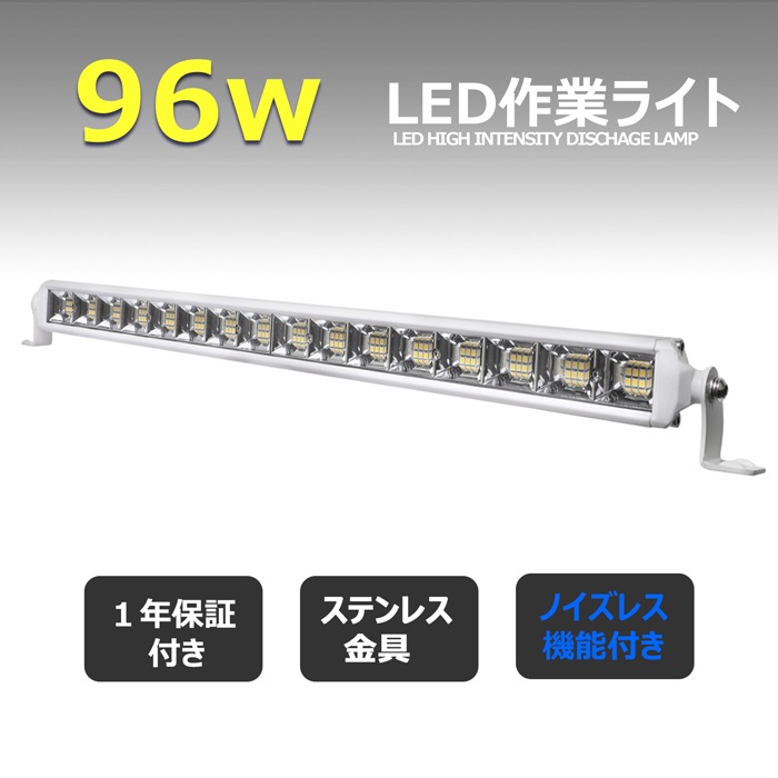 LEDワークライト LEDライトバー 作業灯 ノイズ対策 白ボデイー 96W 12v24v 拡散 集魚灯 投光器 バックランプ デッキライト 漁船