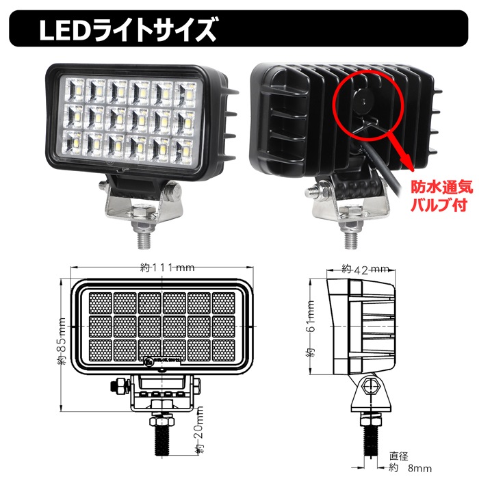 LED作業灯 補助灯 18w LEDワークライト 防水 投光器 12v 24v 集魚灯 漁船 バックライト 船 デッキライト タイヤ灯 船舶 前照灯