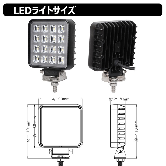 W数: 16W ノイズレス仕様 寿命: 約30,000時間 動作電圧: 10V~30V 防水防震等級: IP67 本体材質: アルミ レンズ材質: PMMA 照射角: 広角タイプ60度 発光色: 6,500K ルーメン: 1,330lm 製品重量: 約300g サイズ: 約90mm×約110mm×約29.8mm セット内容: 【新品】ランプ1個、ステンレスブラケット×1式 保証期間: 1年保証 ※保証書の発行は致しておりません。配送伝票控えが保証書の代わりとなります。