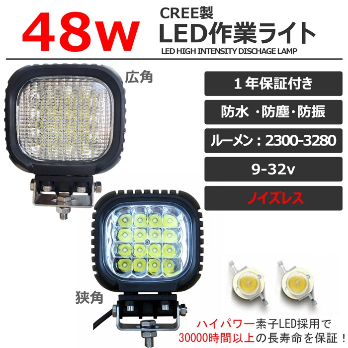 LEDライト商品は1年の完全保証。- CREE製48Wの高輝度LED
