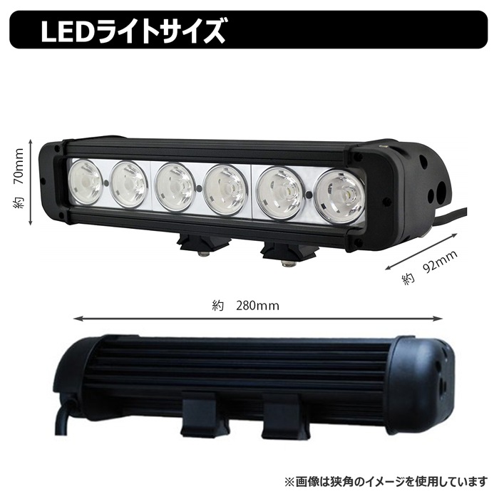 W数: CREE製60W ノイズレス仕様 動作電圧: 12V/24V兼用 使用温度: -40度~85度 寿命: 約50,000時間 防水防震等級: IP67(水中使用不可) 本体材質: アルミ レンズ材質: PMMA 照射角: 広角 発光色: 6,000K ルーメン: 6000lm 製品重量: 1360g サイズ: 281mm×64mm×92mm セット内容: 【新品】ランプ1個、取り付けネジ×1式 保証期間: 1年保証 ※保証書の発行は致しておりません。配送伝票控えが保証書の代わりとなります。