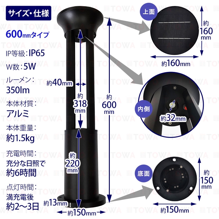 W数: 5W 防水等級: IP65 ルーメン: 350lm 製品重量: 約1.5kg サイズ: 600×160×150mm 保証期間: 2年保証 ※保証書の発行は致しておりません。配送伝票控えが保証書の代わりとなります。
