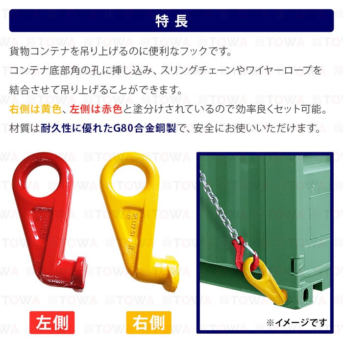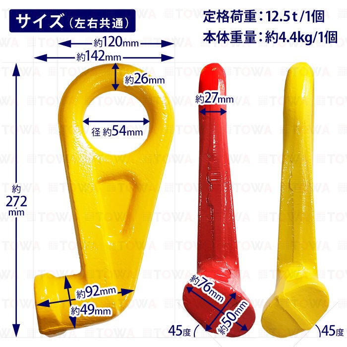 コンテナ吊り上げフック 12.5T【左&右 2セット】コンテナフック 配送コンテナ リフティングフック 重量フック 吊りフック 左&右 45度 12.5t 配送 荷物 差し込む