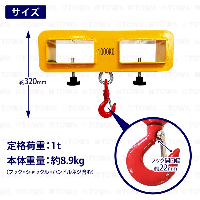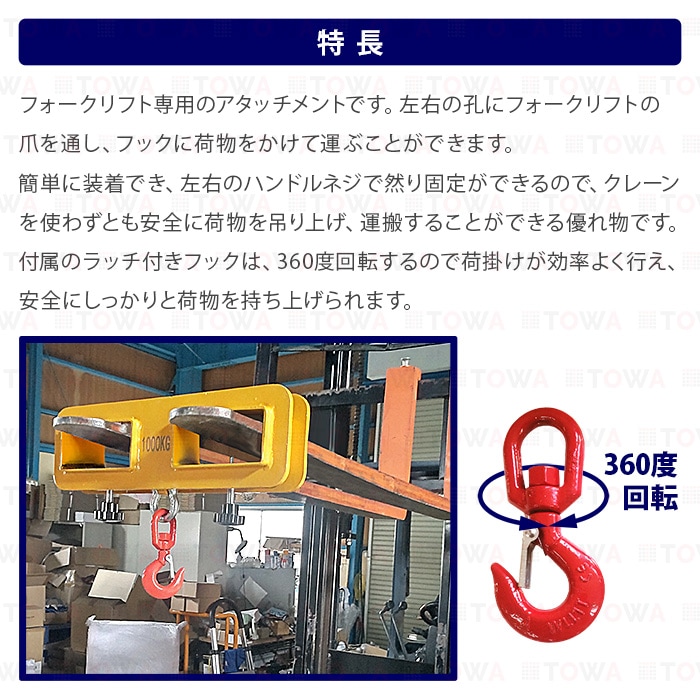 フォークリフト用 アタッチメント フォークリフト用吊りフック 1トン 1000kg 吊り具 フレコンフック 荷吊り 吊り上げ 吊り下げフック 工業用 工場 工業用品 業務用 作業 フレコン吊り 吊りフック