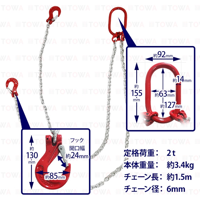 チェーンスリング スリングチェーン 吊具 吊り具 2本吊り 1.5m 2000kg 2T クレーン 玉掛け チェーンフック 吊りクランプ