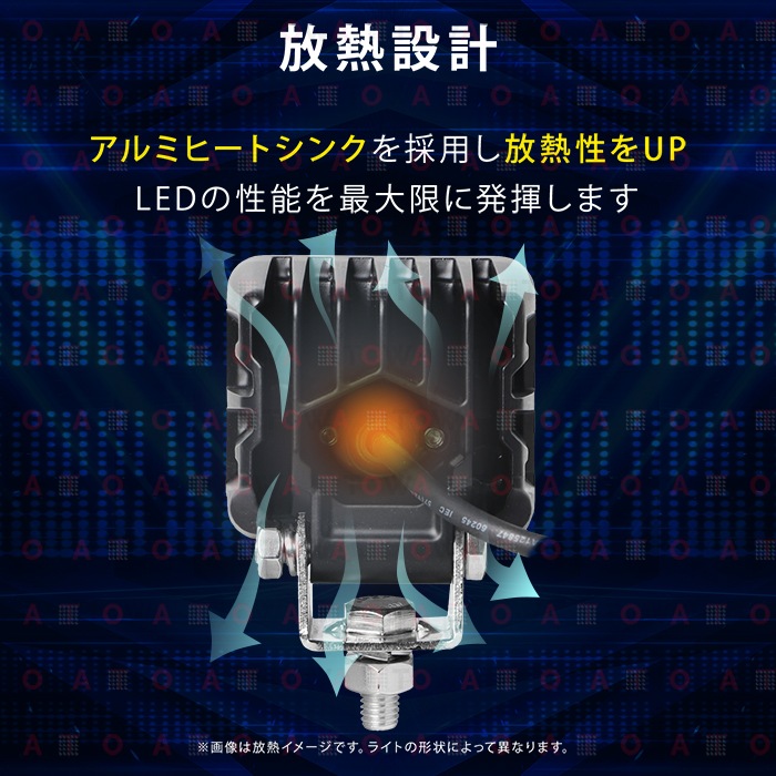 W数 64Wノイズレス仕様 OSRAM製1WLEDチップ×64PCS 動作電圧 10V〜30V 寿命 約30,000時間 防水防震等級 IP67 本体材質 アルミ レンズ材質 ポリカーボネート樹脂(PC) 照射角 広角タイプ 発光色 6,000K ルーメン 5000lm 製品重量 約485g(金具含む)/個 サイズ 78×72×65mm セット内容 【新品】ランプ×1個、304ステンレス金具×1式 保証期間 1年保証 ※保証書の発行は致しておりません。配送伝票控えが保証書の代わりとなります。