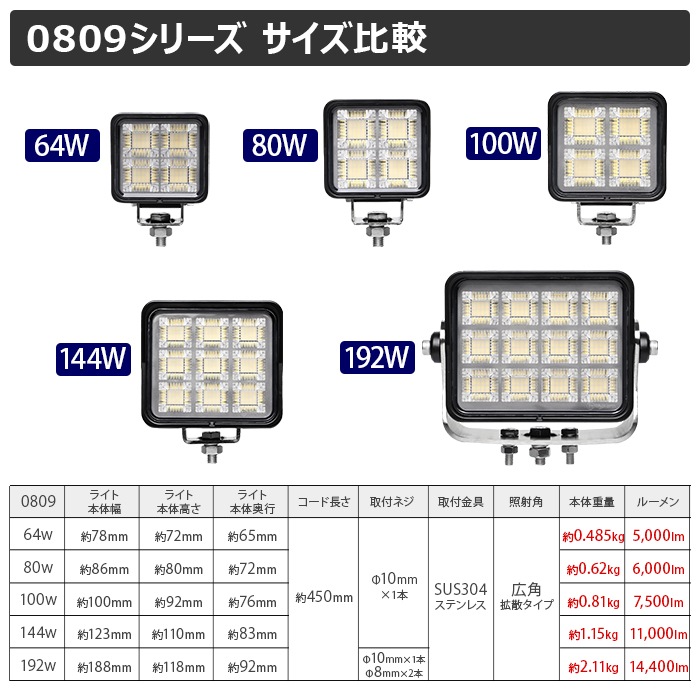 ワークライト LED 作業灯 80w 12v24v 集魚灯 漁船 投光器 バックランプ デッキライト 路肩灯 補助灯 タイヤ灯 船舶用