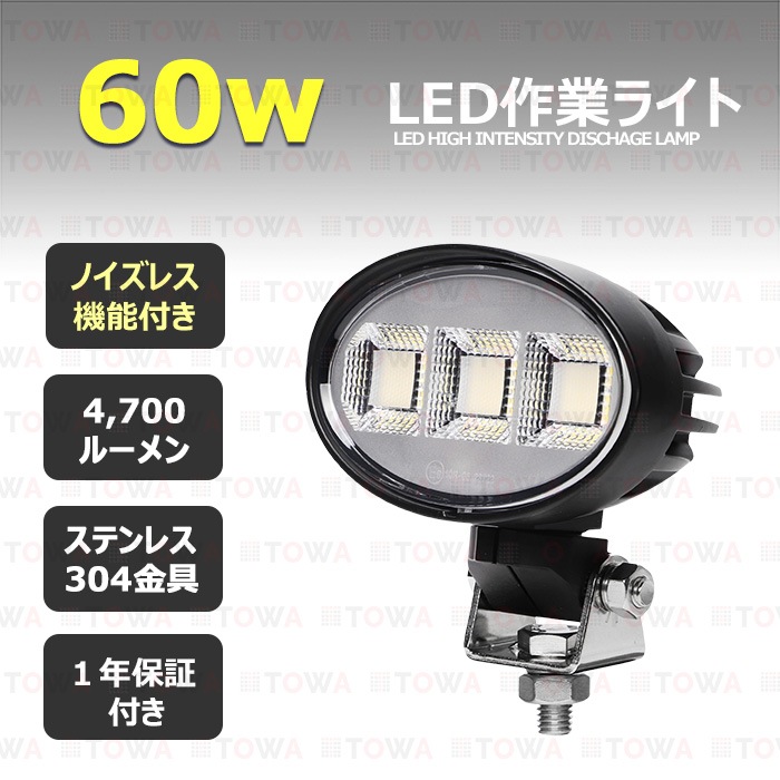 楕円型 作業灯 LED LED作業灯 ワークライト 60w 12v24v 集魚灯 漁船 投光器 バックランプ デッキライト 路肩灯 補助灯 タイヤ灯 船舶用